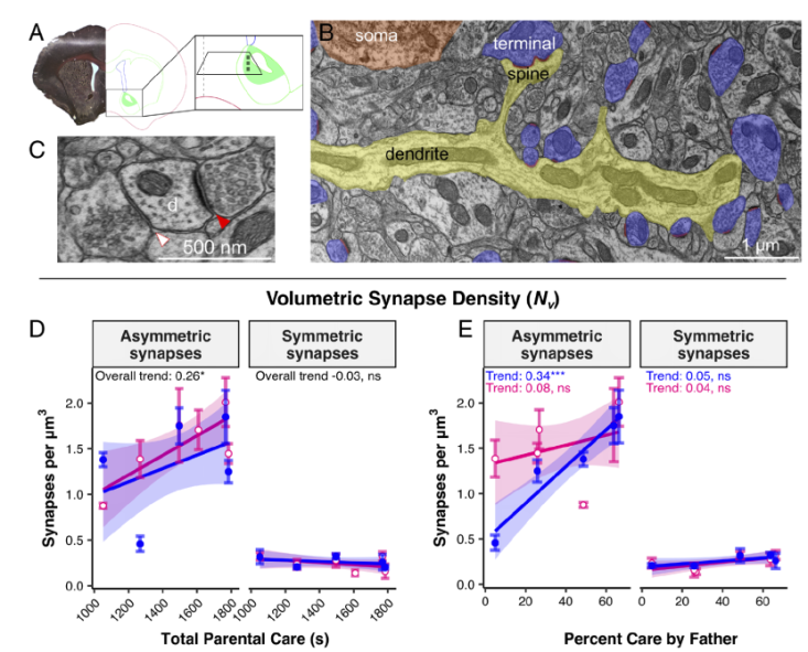 研究发现在哺乳动物中早期父母照顾对婴儿至关重要,并影响许多神经和行为活动。虽然已经有很多类研究探查了在啮齿动物中母亲的照顾对幼鼠生长发育的影响,但很少有研究报道父母双方以及父亲的照顾如何来影响幼鼠的神经发育和行为。